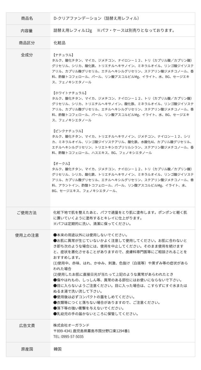 【期間限定!52%OFFセール】 詰め替え用 レフィル ファンデーション 送料無料 カバー力 プチプラ パウダー ミネラルファンデション パウダーファンデーション 人気 D-RAY 韓国コスメ ナチュラルメイク おすすめ マット