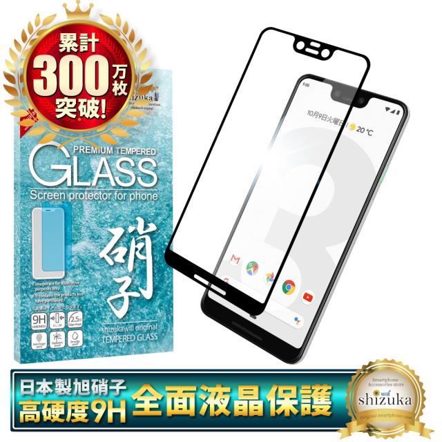 Google Pixel3 XL docomo Softbank 3Dフルカバー フィルム 日本製旭硝子 ピクセル3 XL ガラスフィルム 液晶保護(黒色) 画面保護フィルム shizukawill シズカウィル