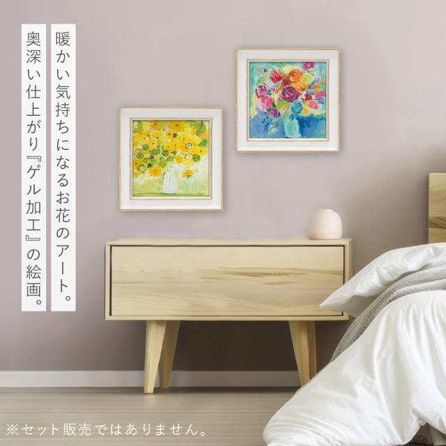 本格的アートをロープライスでご自宅に。手軽に楽しめる小型ゲルアート。お部屋の雰囲気が爽やかで明るい印象になるフラワーモチーフの作品『マティス フローラル』。モダンなタッチはどんなインテリアにも合わせやすく、気軽にアートを取り入れることができます。