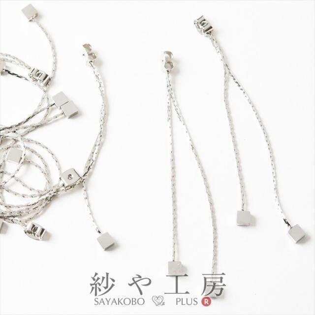 ロングピアスキャッチ真鍮製 揺れるキューブ シルバー 10個 約7.7cm バックキャッチ デザイン アクセサリーパーツ 金具 華奢チェーン