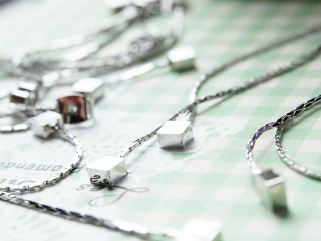 ゆらゆら揺れる華奢チェーンの先にはコロンと可愛い立体型キューブがひとつ♪