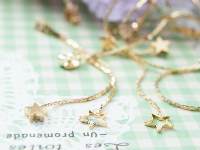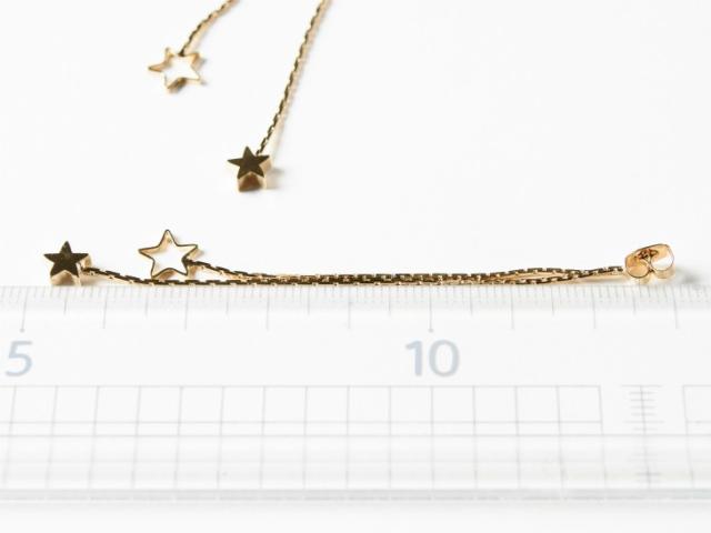 ゆらゆら揺れる華奢チェーンの先には2種類のお星様がまるで流れ星みたい♪