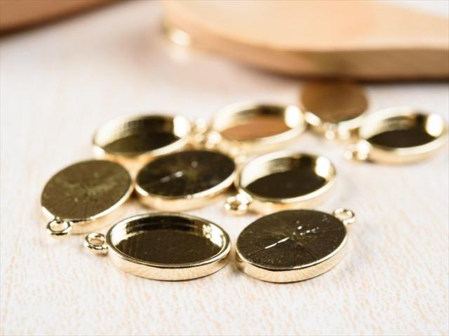 レジン枠 フレーム オーバル 小さめ 19mm ゴールド 10個 10ヶ 約2cm レジン 枠 通し穴 セッティング台 ミール皿 金属 楕円形 アクセサリーパーツ パーツ