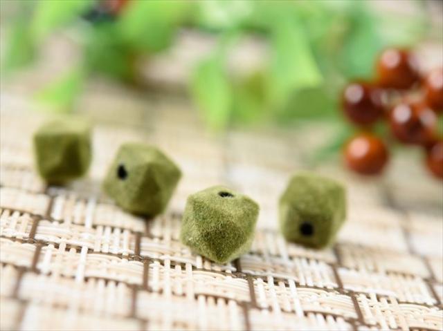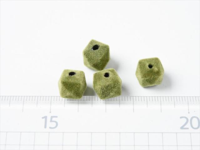 フロッキービーズ 多面体 カーキ 緑 約10mm 約1cm 4個 通し穴 フロッキー ビーズ ベロア ベルベット キューブ 四角 立体 パーツ