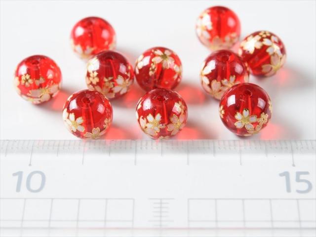 ビーズパーツ 桜ビーズ 透明 10mm レッド 8個 8ヶ 約1cm ビーズ 桜模様入り 穴有り ガラスビーズ ガラスチャーム アクセサリー アクセサリーパーツ パーツ