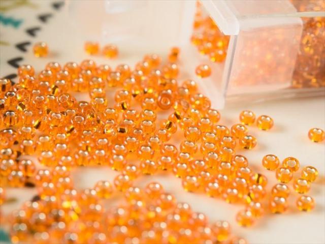 ビーズ 丸小ビーズ col.36 メタリックオレンジ 2mm オレンジ 10g 約0.2cm 丸ビーズ 銀引き 11/0 RR ガラス 透明プラケース入 アクセサリーパーツ パーツ