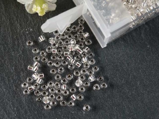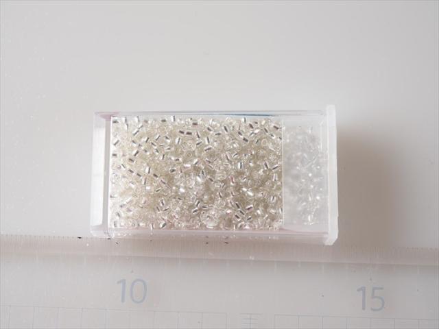 ビーズ 丸小ビーズ col.34 ホワイトシルバー 2mm 10g 約0.2cm 丸ビーズ 銀引き 11/0 RR ガラス 透明プラケース入 アクセサリーパーツ パーツ