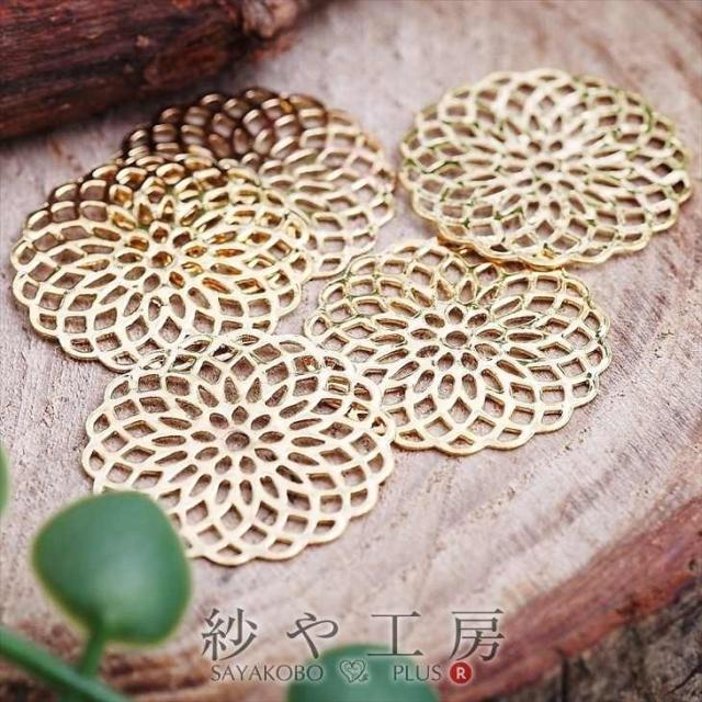 透かしパーツ フラワー(約20x20mm)約5個 ゴールド メタルチャーム 手芸材料 デコ素材 ハンドメイド資材 ネイル レジンクラフト 部品
