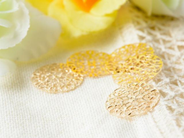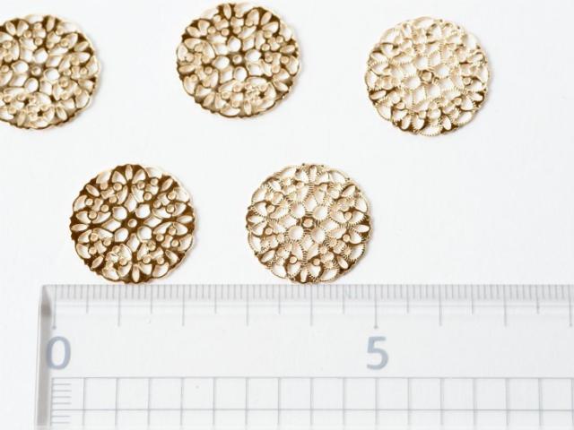 透かしパーツ ラウンド(径約20mm)5個 ゴールド スチール メタルチャーム 座金 アクセサリーパーツ 手芸材料 DIY資材 レジン用品 素材 部品