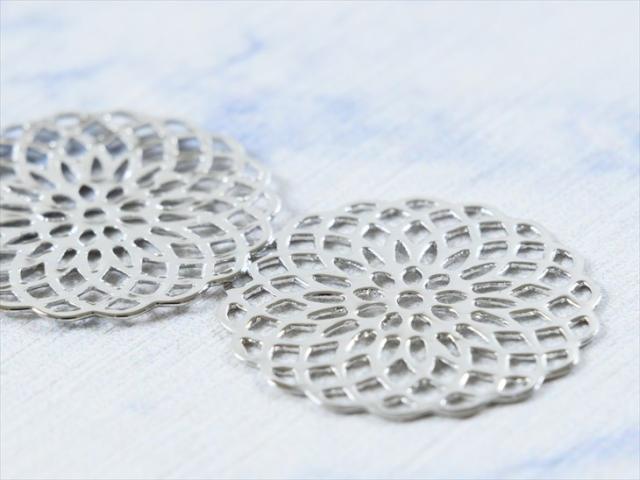 透かしパーツ フラワー(約19x19mm)約2個 シルバー メタルチャーム 手芸 アクセサリー ハンドメイド資材 スカシ レジン 埋め込み