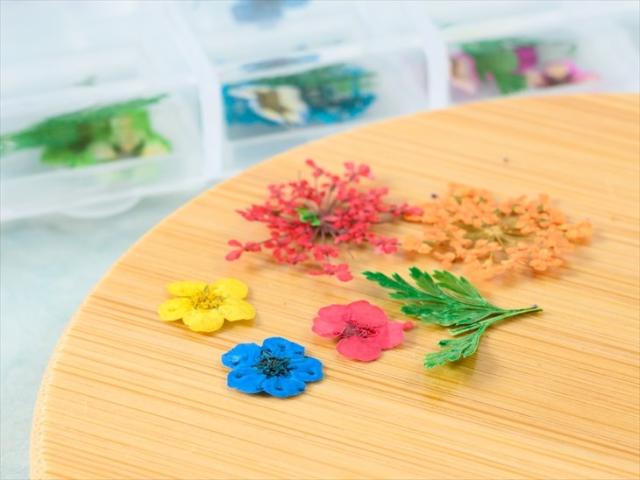 大人気の本物押し花の小花シリーズ♪1種類づつのケースを付けました★ジェルでもポリッシュでもトップコートで綺麗なお花アートの出来上がり♪クリアジェルで厚めにコートするとまるでガラスに閉じ込められたお花のようでとっても可愛らしい仕上がりになります。