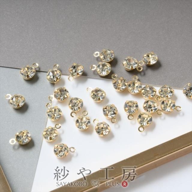 ラインストーンパーツ(約5mm)約25個 KC金xクリスタル ラウンド カン付き 1穴 台付き フレームストーン 手芸材料 アクセサリー素材