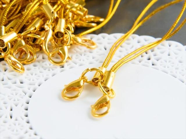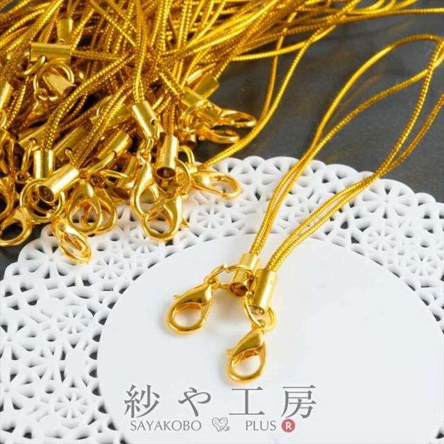 カニカン付き携帯ストラップ50本セットGOLD×GOLD金 全長約90mm 紐長さ約70mm