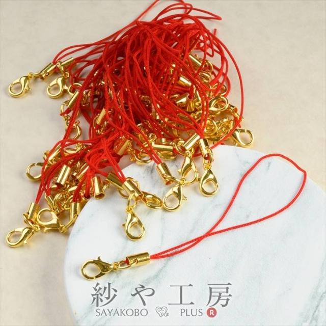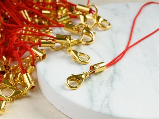 カニカン付き携帯ストラップ50本セット赤×金ゴールド 全長約90mm 紐長さ約70mm