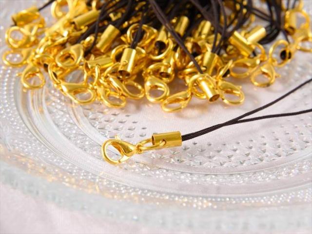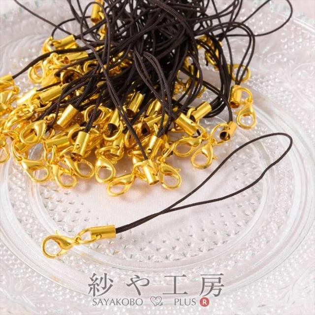 カニカン付き携帯ストラップ50本セット茶色ブラウン×金ゴールド 全長約90mm 紐長さ約70mm