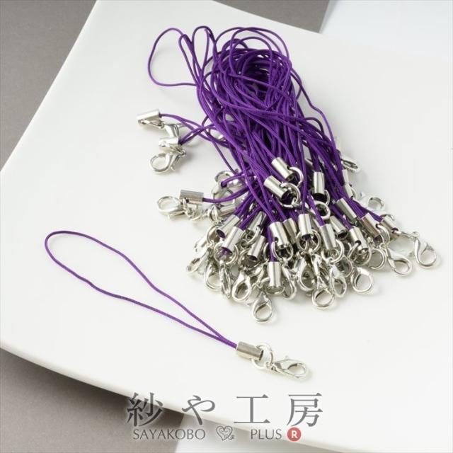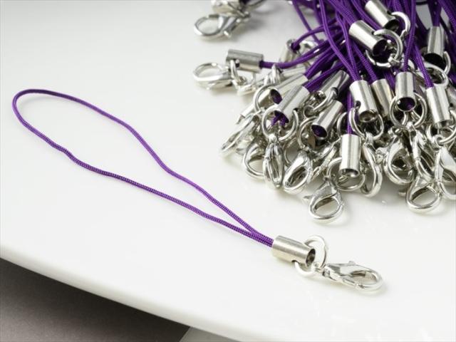 カニカン付き携帯ストラップ紫×銀シルバー約50本セット全長約90mm 紐長さ約70mm