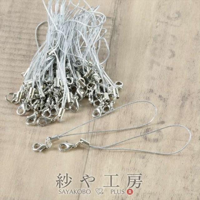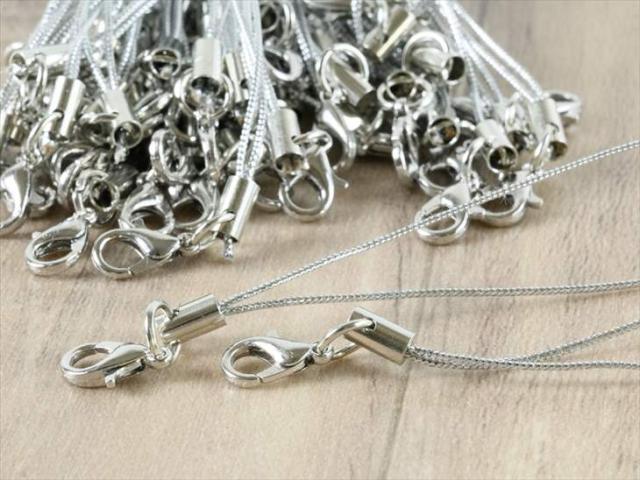 カニカン付き携帯ストラップ50本セット銀シルバー 全長約90mm 紐長さ約70mm
