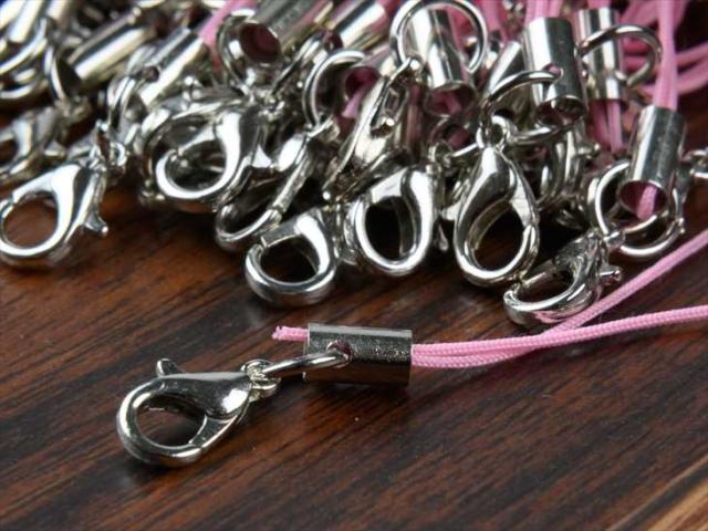 カニカン付き携帯ストラップ500本セットピンク 全長約90mm 紐長さ約70mm