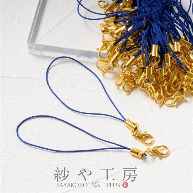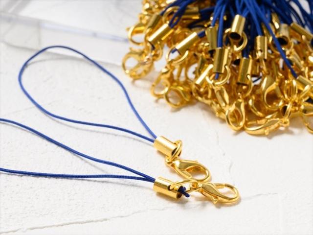 カニカン付き携帯ストラップ50本セット青ブルー×金ゴールド 全長約90mm 紐長さ約70mm