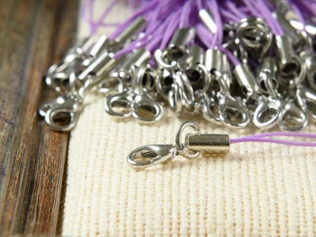 カニカン付き携帯ストラップ50本セット薄紫パープル 全長約90mm 紐長さ約70mm