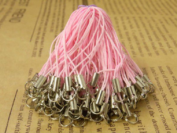 2重丸カン携帯ストラップパーツ50本セットピンク 全長約80mm 紐約70mm