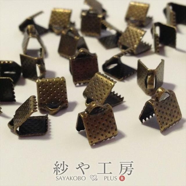 レース留め 約30個 ヒモ留め 金古美 6mm 0.6cm フック 金具 ハンドメイド リボンパーツ ニッケルフリー 金属アレルギー対応