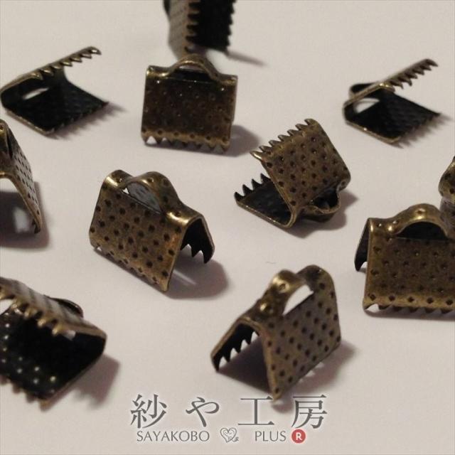 レース留め金具・ヒモ留め 10個セット(6mm 0.6cm) セピアカラー 金古美 金属メッキ 手芸用 金具 材料 手芸材料 パーツ レース タグ ニッケルフリー 金属アレルギー対応