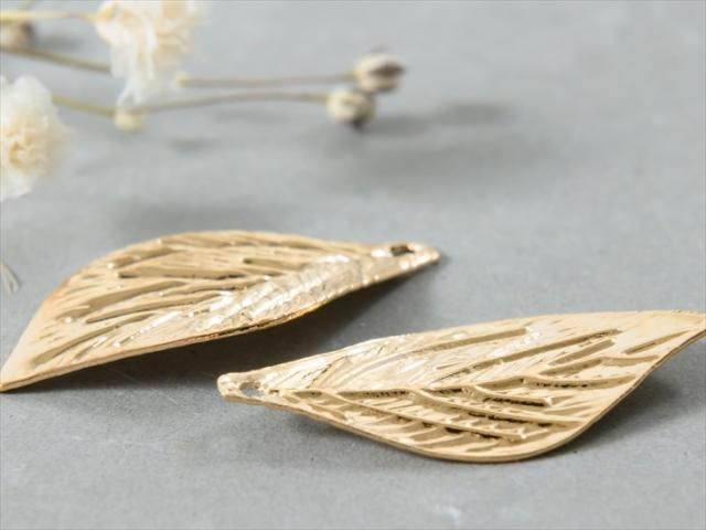 【内容詳細】メタルチャーム 繊細な葉脈加工リーフ/葉っぱ 2個