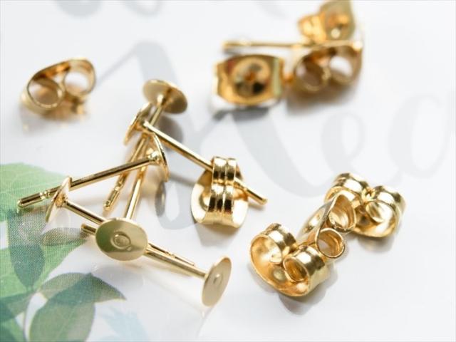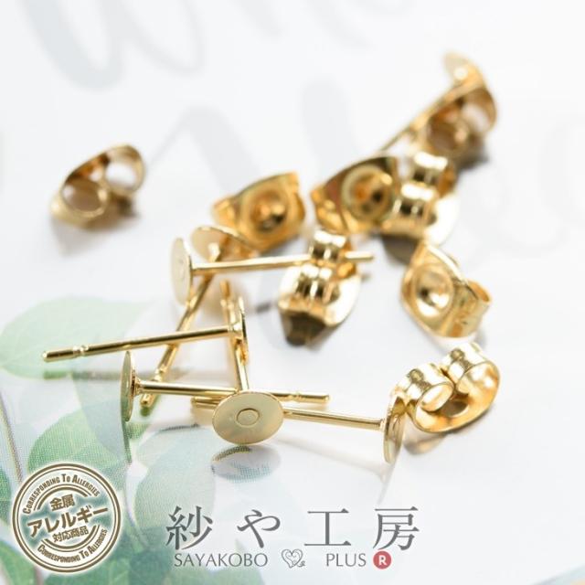 サージカルステンレス 316L ピアスパーツ 5ペア ステンレス316L 金属アレルギー対応 ポストピアス 4mm平皿 キャッチ付 12mm ゴールド