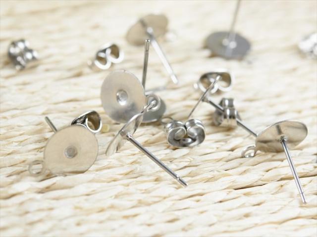 サージカルステンレス 316L ピアスパーツ 30ペア ステンレス316L 金属アレルギー対応 ポストピアス 8mm平皿 カン付 12mm シルバー