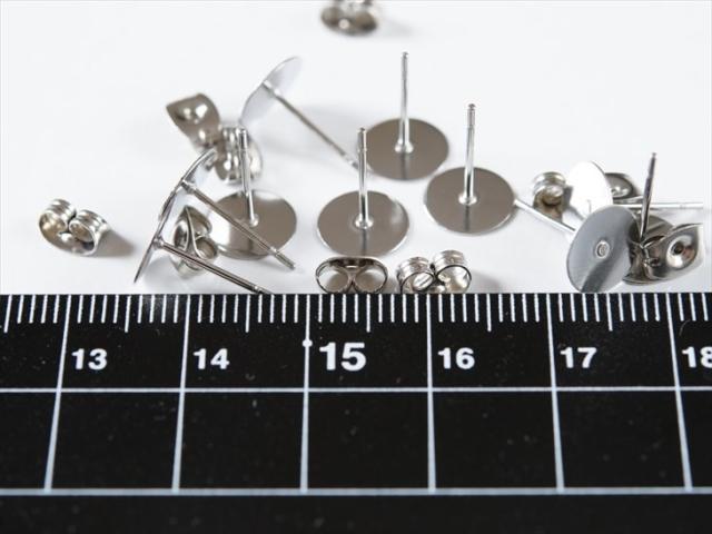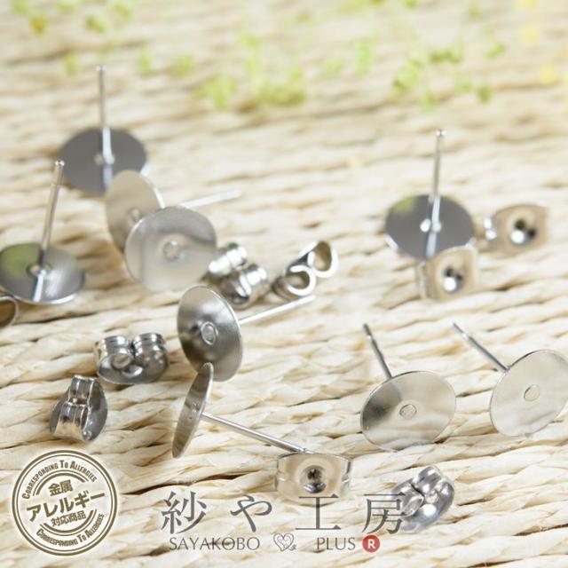 サージカルステンレス 316L ピアスパーツ 5ペア ステンレス316L 金属アレルギー対応 ポストピアス 8mm平皿 キャッチ付 12mm シルバー