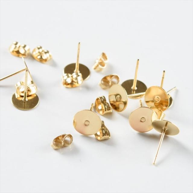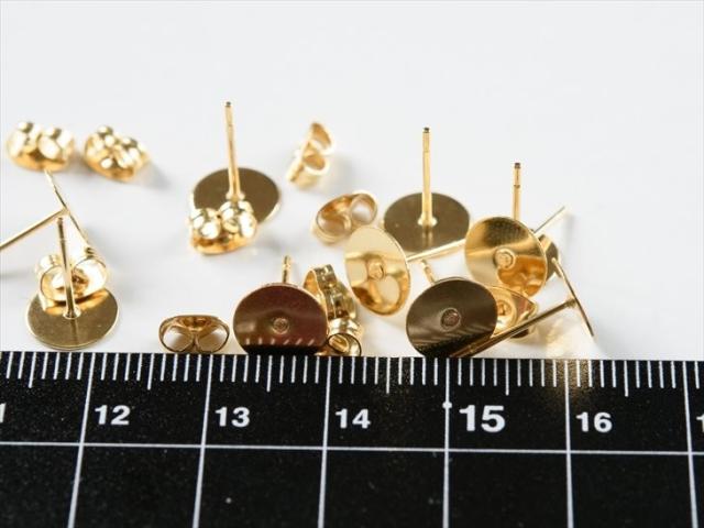 サージカルステンレス 316L ピアスパーツ 5ペア ステンレス316L 金属アレルギー対応 ポストピアス 8mm平皿 キャッチ付 12mm ゴールド