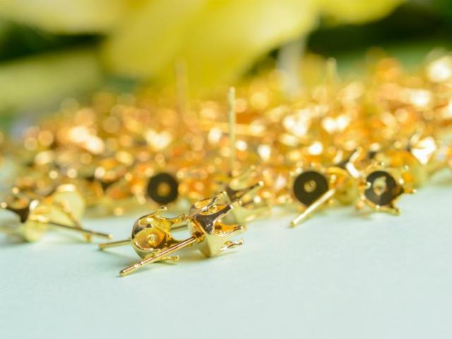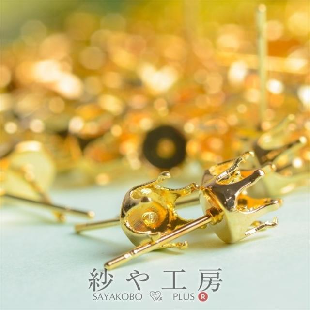 立て爪ピアスパーツ 6mmストーン用(約15mm)約50ペア(100ヶ) 金属アレルギー対応 ニッケルフリー ゴールド 六つ爪 おまけキャッチ付