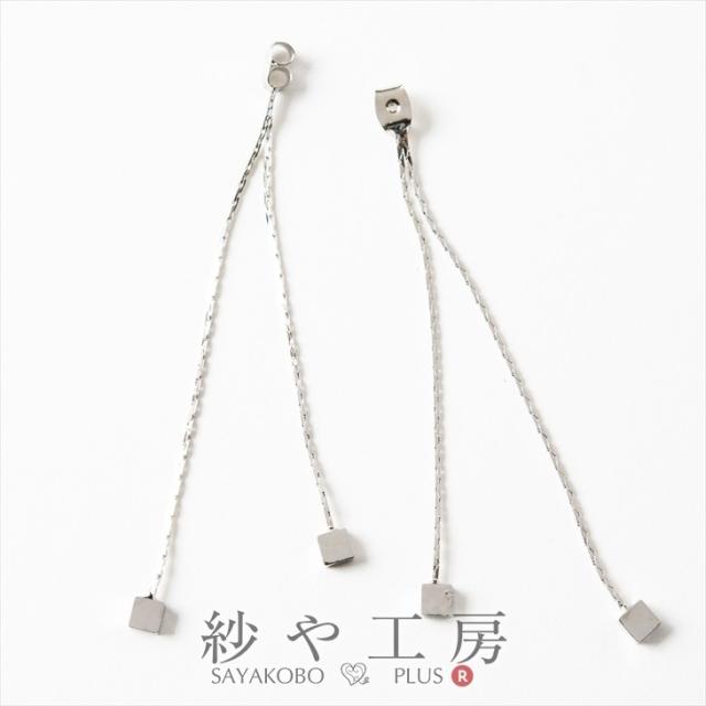ロングピアスキャッチ真鍮製 揺れるキューブ シルバー 2個 約7.7cm 箱 バックキャッチ デザイン アクセサリーパーツ 金具 華奢チェーン