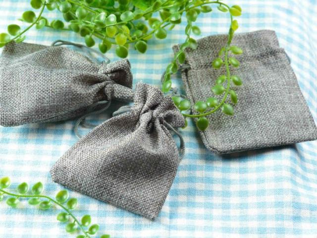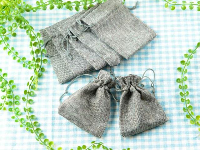 ジュエリー袋 亜麻袋風 88mm 10枚 グレー リネン ジュエリーケース ポーチ 巾着バッグ アクセサリー入れ 包装用品 手芸材料
