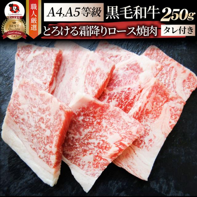 A4,A5ランク 特選 黒毛和牛 ロース 焼肉 250g 今だけ焼肉のタレ付き 【 牛肉 牛 焼肉 A5等級 A4等級 バーベキュー BBQ 肉 カルビ BBQ 焼き肉 国産 肉 ギフト プレゼント プレゼント 女性 男性 人気 お祝い 】 お肉の しゃぶまる