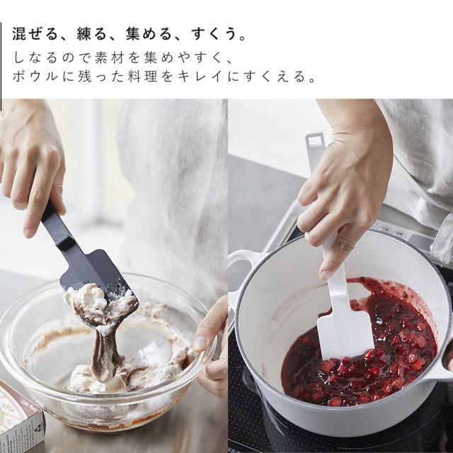 色々なシーンで大活躍。しなるので素材を集めやすく、ボウルに残った料理を綺麗にすくい取れます。