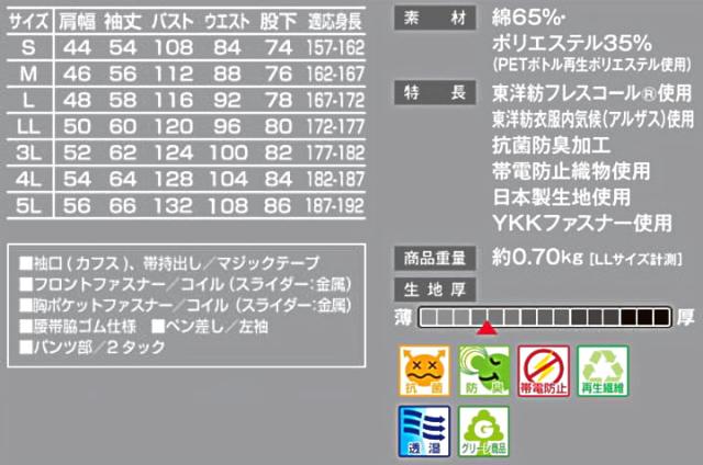 つなぎ服 1-3500 AUTO-BI 長袖 抗菌 防臭 帯電防止加工 透湿 日本製生地 ツナギ 山田辰 作業服 作業着 オールシーズン S-3L