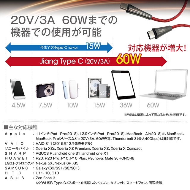 Type-C ケーブル type-c タイプC ケーブル 両側 充電器 変換アダプタ ハブ 急速充電 DC20V 3A 60W 120cm iPad jiang-typec02