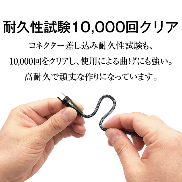 コネクター差し込み耐久試験も、10,000回クリアし、使用による曲げにも強く、高耐久で頑丈な作りになっています。