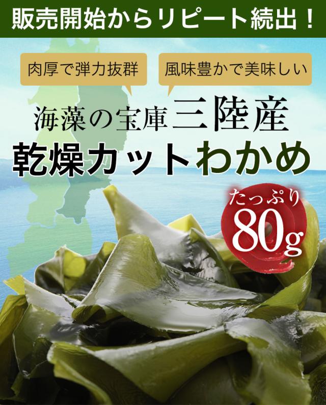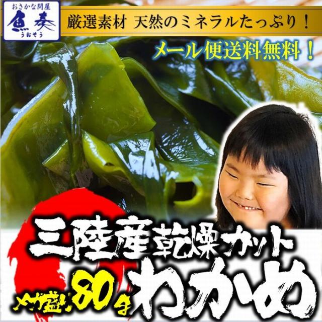 魚奏 三陸産 乾燥カットわかめ 80g 送料無料 ワカメ 若芽 スープ 国産 乾燥 ミネラル 在宅 取り寄せ 母の日 父の日 ネコポス メール便