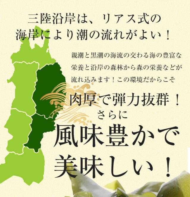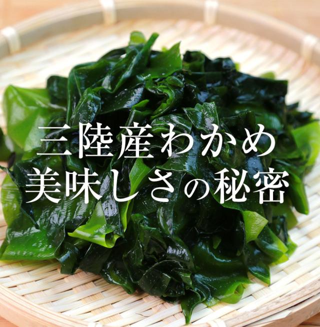 潮の流れの良い三陸産で育まれた風味豊かなわかめは肉厚で弾力抜群、はっきりとした味わい特徴です。