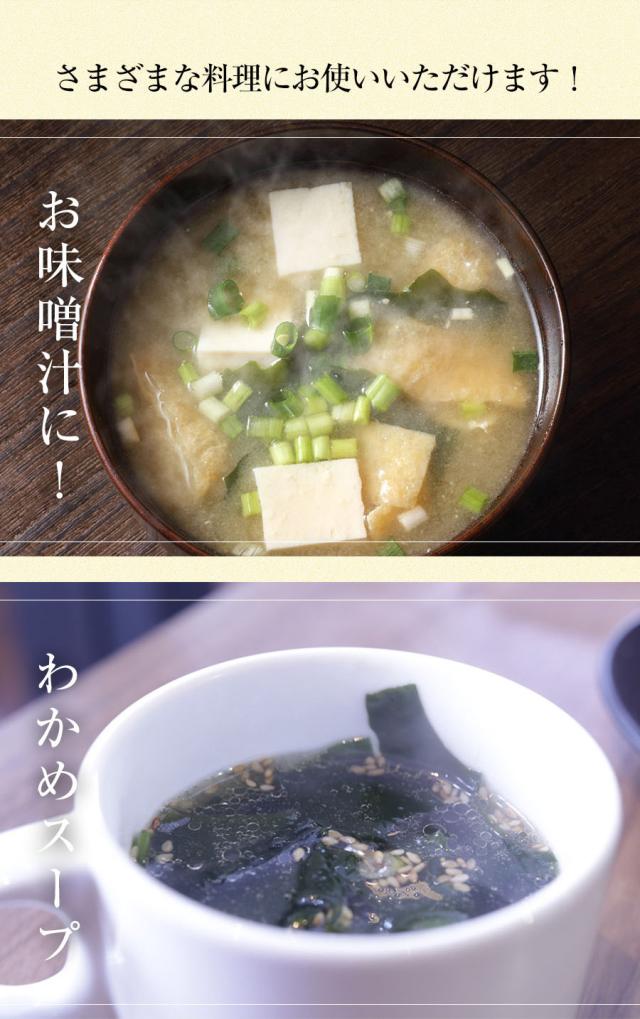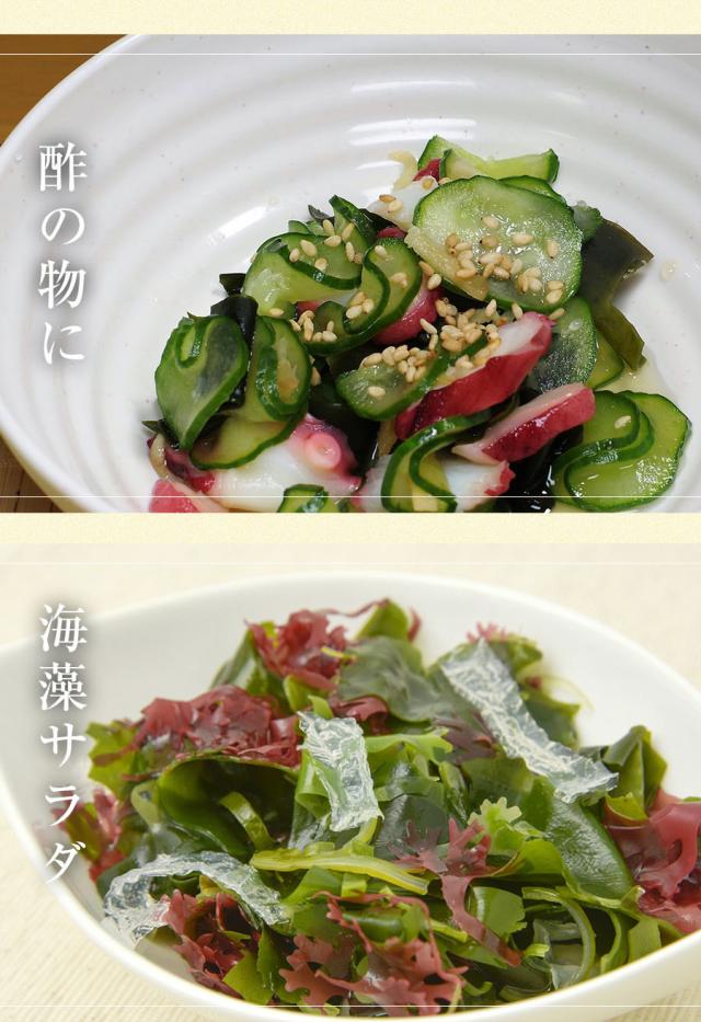 味噌汁、海藻サラダ、わかめうどん、わかめスープ、酢の物、わかめごはんなどでお楽しみください。