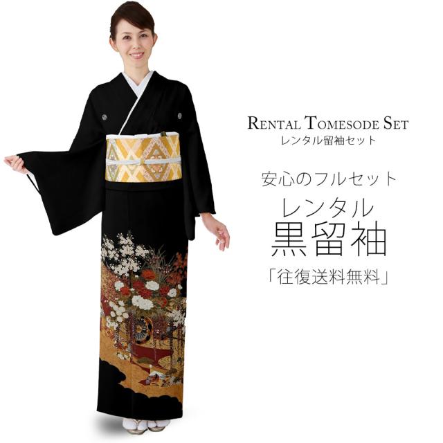 レンタル 黒留袖 フルセット 貸衣装 着物【卒業式 七五三 結婚式 お宮参り 貸衣装】【往復送料無料】 五三桐