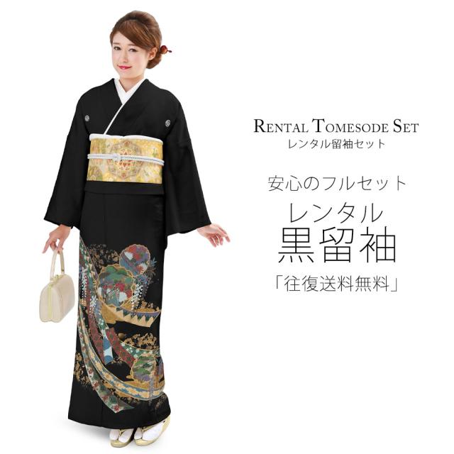 レンタル 黒留袖 フルセット 貸衣装 着物【卒業式 七五三 結婚式 お宮参り 貸衣装】【往復送料無料】 五三桐