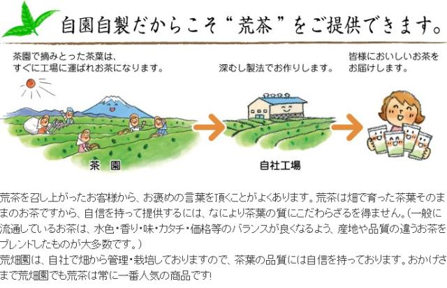 極上荒茶は4月の末のやわらかい新芽を丁寧に摘み取り、茶師がやさしく揉み上げます。芽も茎も柔らかいので、品のあるコクと旨みが凝縮したとろみのある、まさに極上の味です。湯飲みに注いだ色もグリーン色が深く、コクがあって美味しいお茶をお探しの方、お茶通の方にはおすすめです。