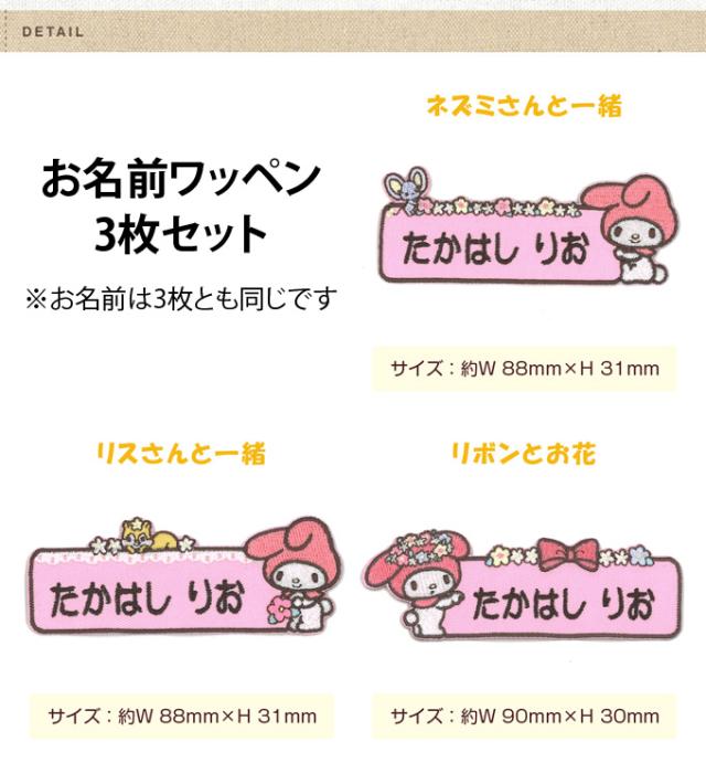 お名前ワッペン マイメロディ サンリオ キャラ 1行 3枚セット ネームワッペン アイロン 入園 刺繍 プレゼント OR