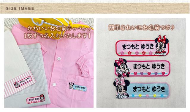 刺繍ワッペン アップリケ お祝い 名入れ 入学 幼稚園 保育園 小学校 ローマ字 ひらがな Disney ミッキー ミニー
