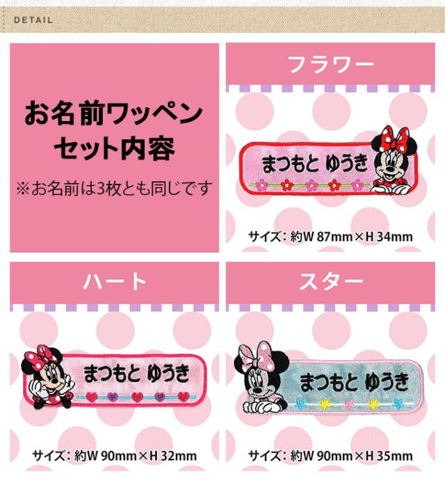 ミニーマウスのお名前ワッペン3枚セット【1行セット】