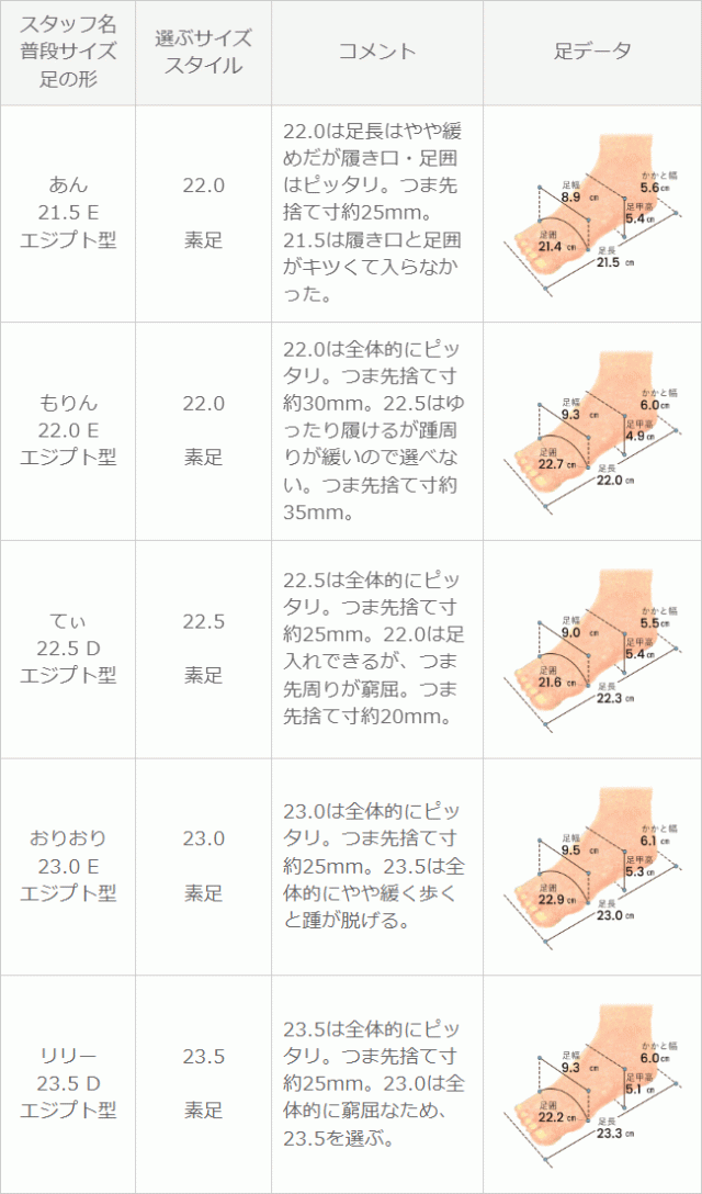 ※足の形には個人差があります。スタッフ試着感想は参考程度にお考え下さい。